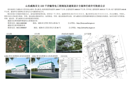 山东威海召文220千伏输变电工程规划及建筑设计方案和行政许可批前公示